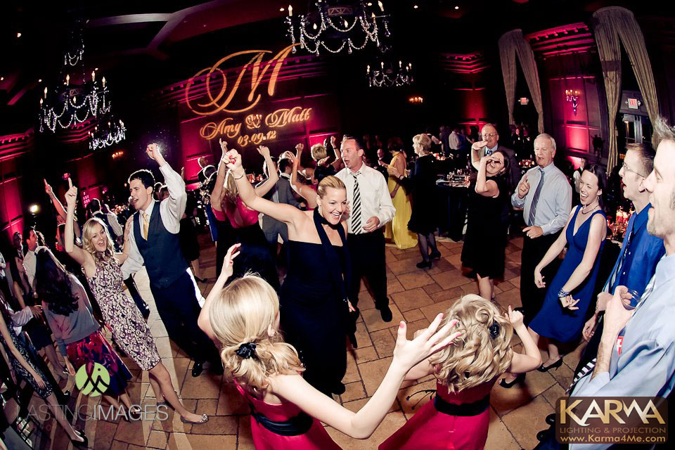 Any good lighting or production company will have more advanced uplights. I’m not knocking the DJ that offers uplights in his or her package. We started as DJs before we were a production company many many years ago and are guilty of buying the cheapest lights we could find in the beginning. A production company or dedicated lighting company specializes in lighting, therefore we at Karma Event Productions invest in the best possible technology. When I talked about color mixing, I was referring to mixing colors to get a new color. For example, red and blue make purple. If more red is added, then the purple is more pinkish. If more blue is added, then the purple is more blueish. This can be done manually or with a computer. Our uplights are able to be DMXed so we can control them wirelessly as well. That first set of uplights I referred to above in this paragraph when we were DJs were not wireless DMX. So if a client wanted the room to change colors, then we had to run cables from light to light. And if the client asked mid-event to change colors, we couldn’t. Talk about spending hours on something that takes only minutes now.