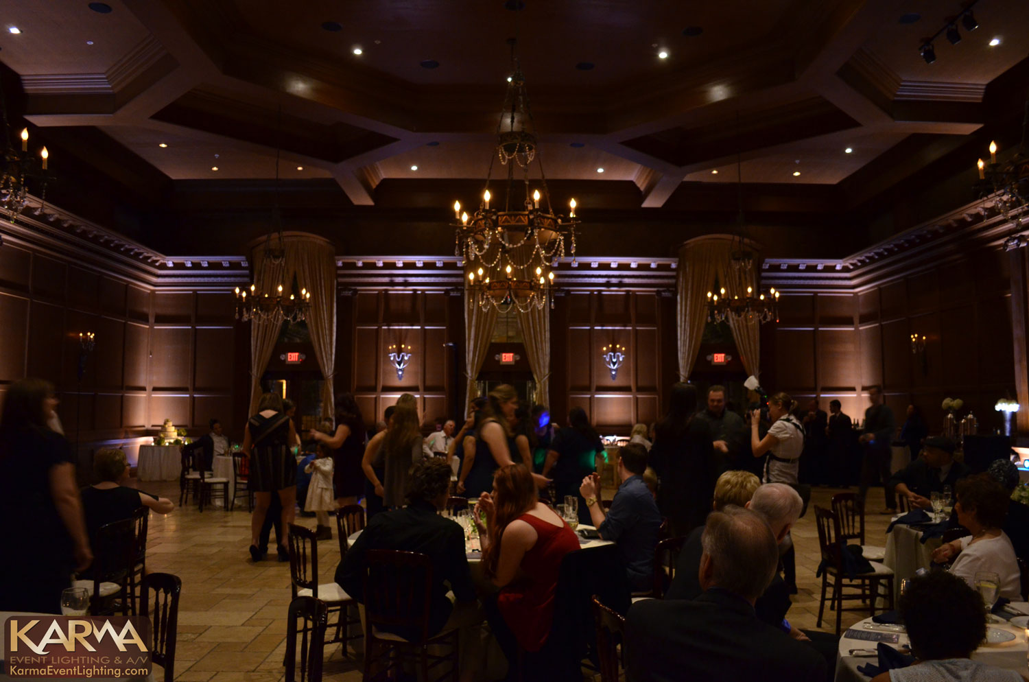 Still though… do you need uplighting? Out of everything we do as a production company, uplighting is the most basic. There are a few reasons. First of all, uplighting is the base of any great lighting plan. We at Karma Productions like to layer the lighting we do. Meaning that uplighting is the place we start, then we add in elements such as a monogram, pin spots, dance floor lighting, pattern washes, etc. We’ll talk about monogram, pin spots and dance floor lighting and pattern washes in other articles. For now, I just want to focus on uplighting and whether you need it. As I said, uplighting is the base of any great lighting plan.
